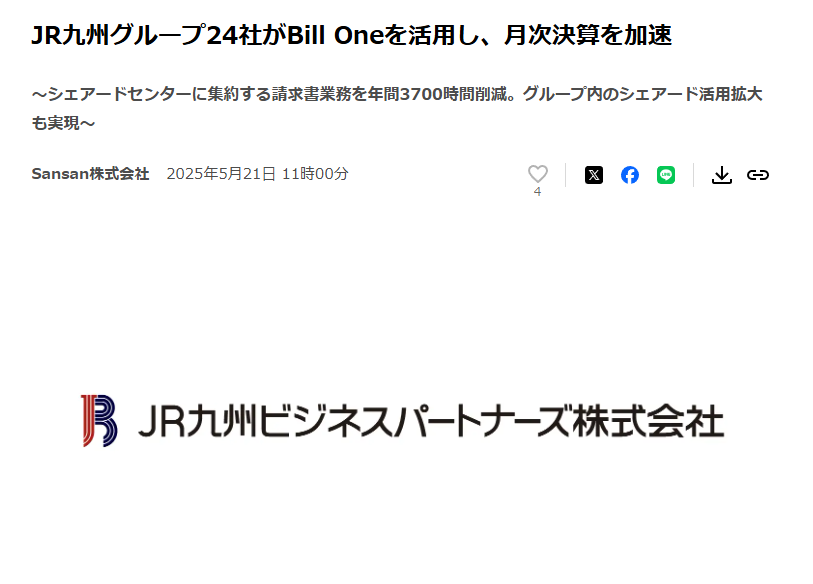 JR九州グループ24社がBill Oneを活用し、月次決算を加速 | Sansan株式会社のプレスリリース