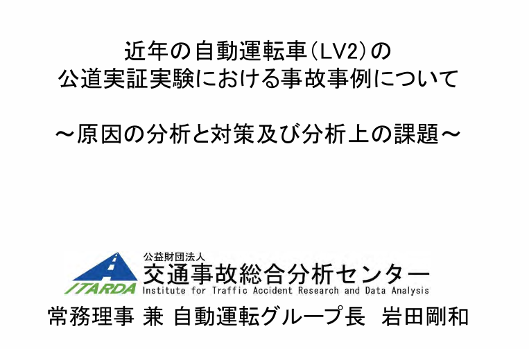 近年の自動運転車(Lv.2)の公道実証実験における事故事例についてー原因の分析と対策及び分析上の課題-