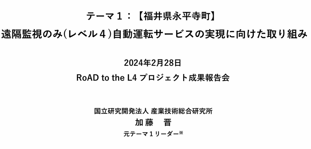 • 永平寺町のレベル4自動運転サービス自転車接触事故