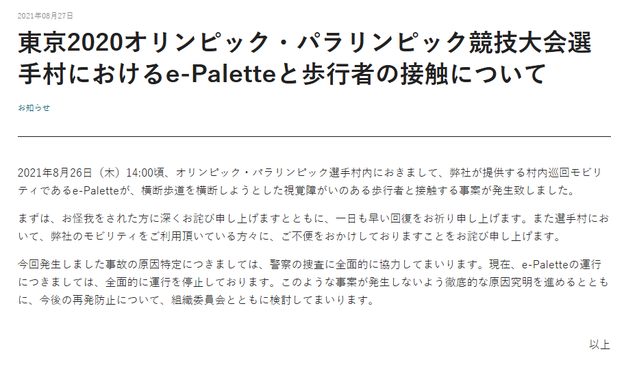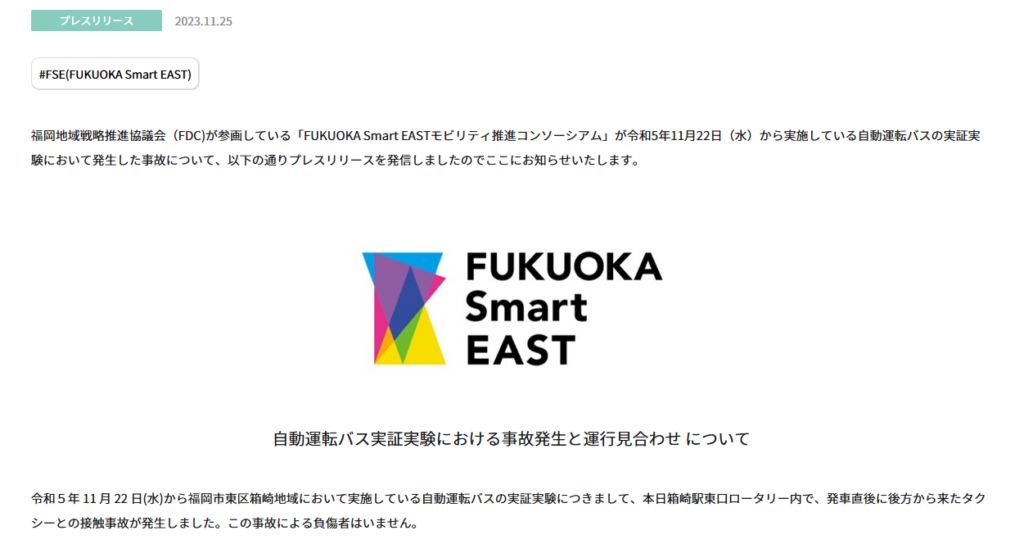 トヨタ自動車のe-Palette事故では、事故発生の翌日に公式発表を行い、3日後には安全対策と運行再開を発表するなど、迅速で透明性の高い情報開示を実践しました。福岡地域戦略推進協議会も、事故発生日時と状況を迅速に公開しています。
