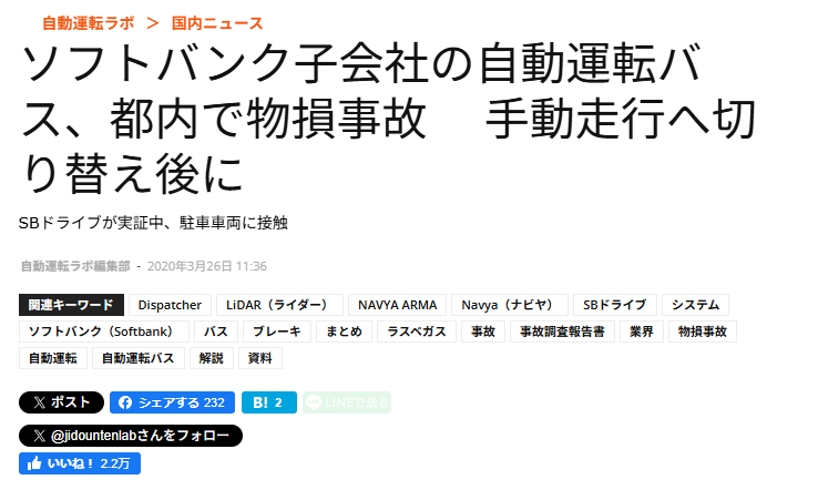 • 名古屋大学の低速自動運転車接触事故