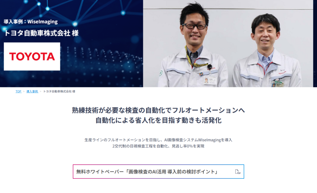 - トヨタ自動車が検査工程の完全自動化を実現した事例