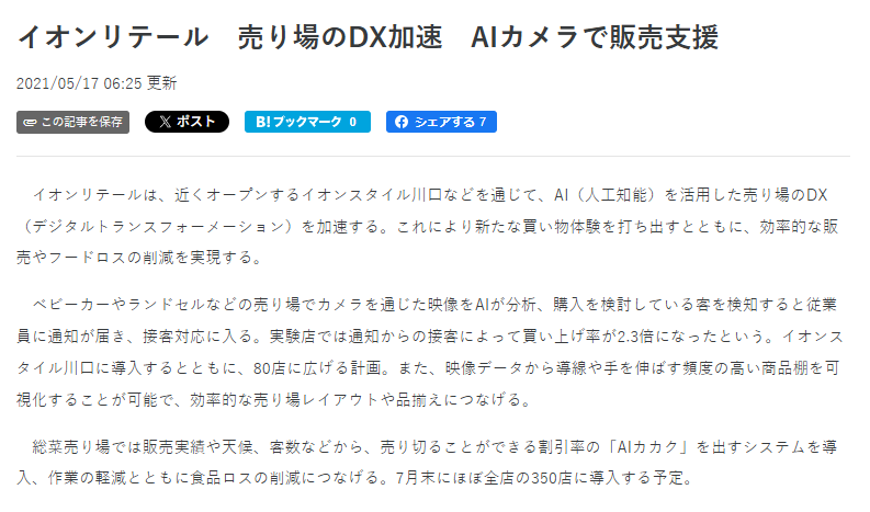 イオンリテール 売り場のDX加速 AIカメラで販売支援 | 繊研新聞