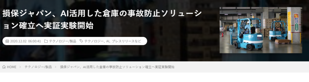 損保ジャパン、AI活用した倉庫の事故防止ソリューション確立へ実証実験開始 │ LOGI-BIZ online ロジスティクス・物流業界ニュースマガジン