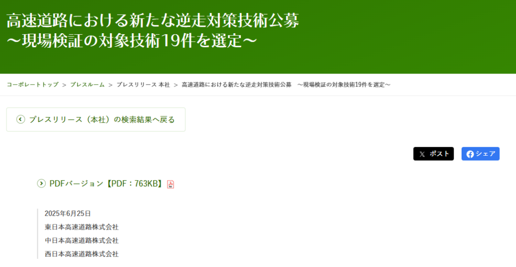 高速道路における新たな逆走対策技術公募 ~現場検証の対象技術19件を選定~ | NEXCO東日本