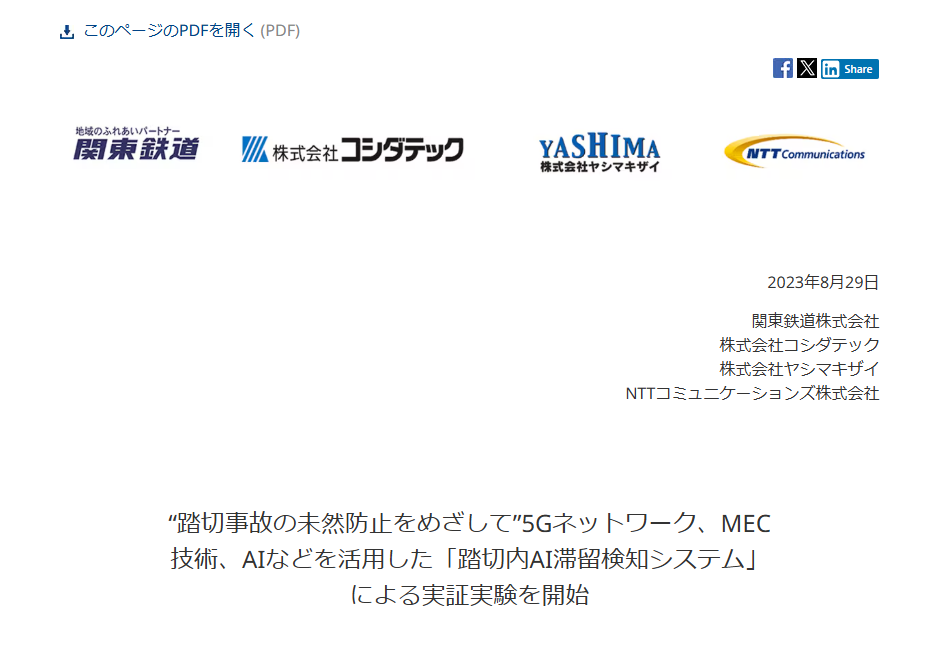 ニュース 2023年8月29日:“踏切事故の未然防止をめざして”5Gネットワーク、MEC技術、AIなどを活用した「踏切内AI滞留検知システム」による実証実験を開始|NTTドコモビジネス 企業情報