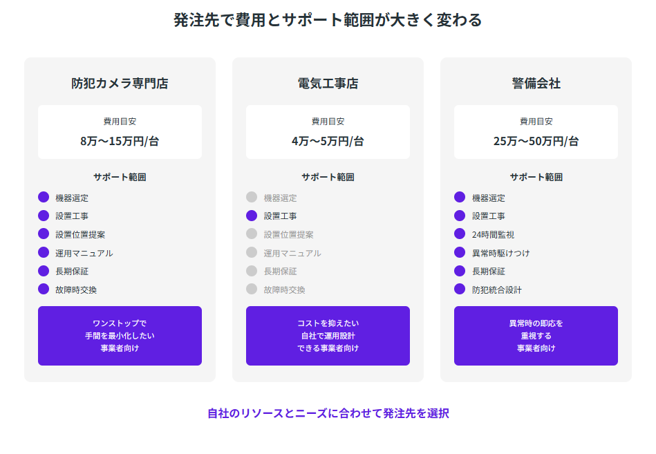 防犯カメラ専門業者の費用目安によると、この金額には以下が含まれます。