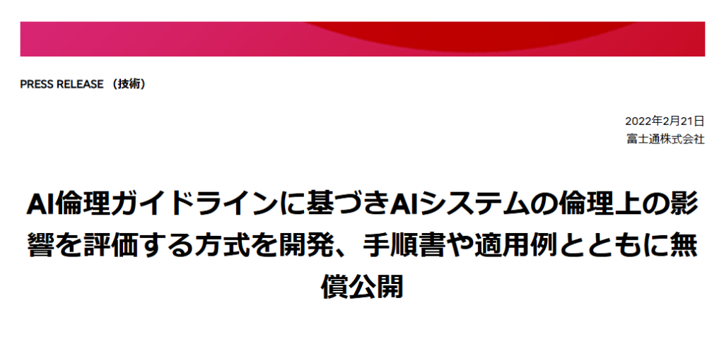 - 富士通がAI倫理影響評価システムを導入した事例