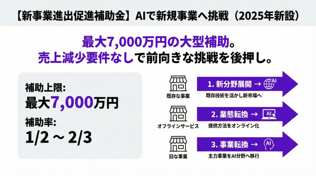 【新事業進出促進補助金】AI新規事業なら最大7,000万円【2025年度新設】