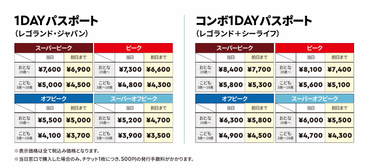 アフター4段階の価格変動制に移行(時期・曜日・需要期などで細分化)。公式サイトでも「来場日により価格が異なる」旨を明示