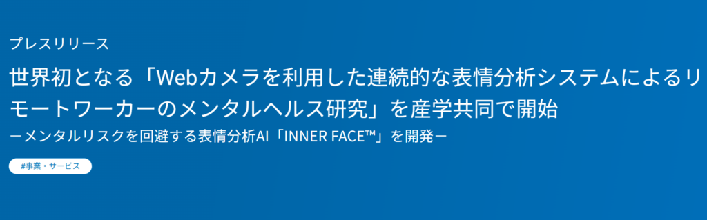 世界初となる「Webカメラを利用した連続的な表情分析システムによるリモートワーカーのメンタルヘルス研究」を産学共同で開始