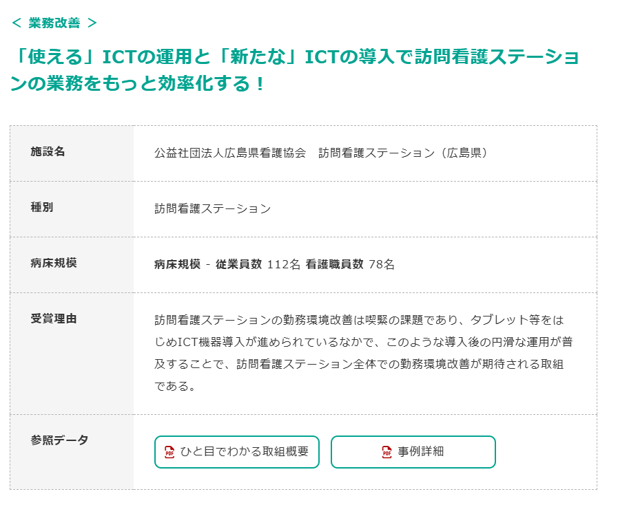 - 広島県看護協会 訪問看護ステーション:「使える」ICT運用と新規ICT導入で業務効率化