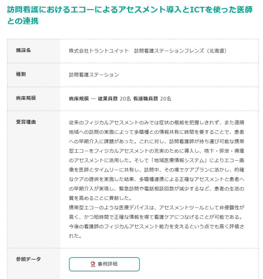 訪問看護におけるエコーによるアセスメント導入とICTを使った医師との連携 – 公益社団法人日本看護協会 | Japanese Nursing Association