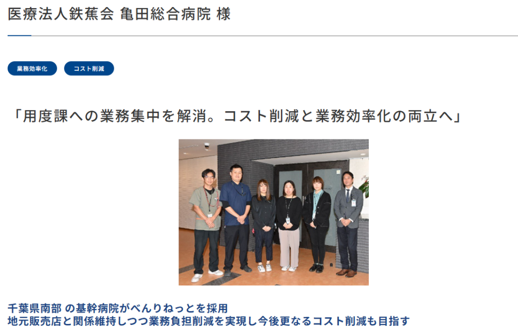 医療法人鉄蕉会 亀田総合病院 様 | 購買システムなら べんりねっと