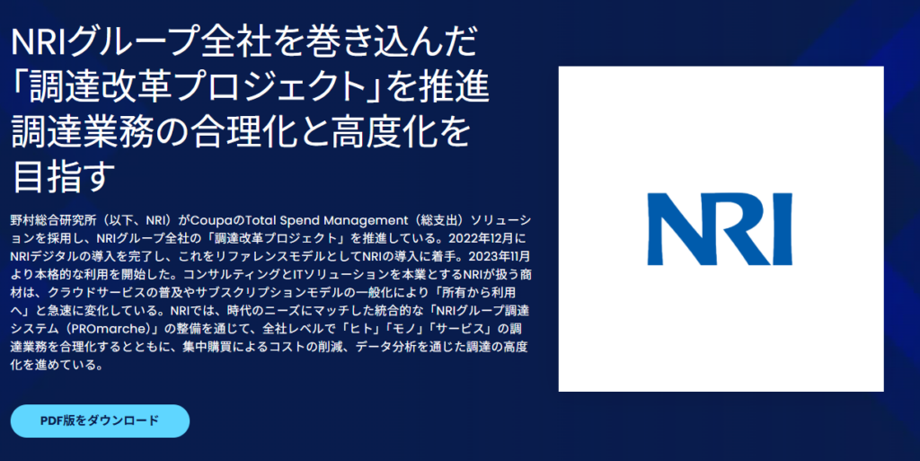 NRIグループ全社を巻き込んだ 「調達改革プロジェクト」を推進 調達業務の合理化と高度化を目指す|導入事例|Coupa(クーパ)