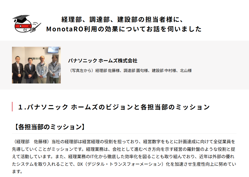 パナソニック ホームズ株式会社-ご利用事例 |間接材の購買管理ならモノタロウ