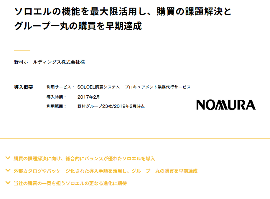 【導入事例】野村HD様|購買統制とサービス材購買の最適化|SOLOEL