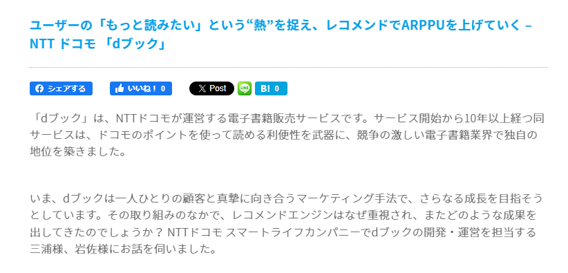 NTTドコモのdブックがARPPU110%向上を実現した事例