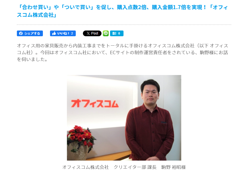 「合わせ買い」や「ついで買い」を促し、購入点数2倍、購入金額1.7倍を実現!「オフィスコム株式会社」 | SILVER EGG TECHNOLOGY