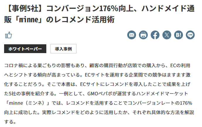 【事例5社】コンバージョン176%向上、ハンドメイド通販「minne」のレコメンド活用術 |ビジネス+IT