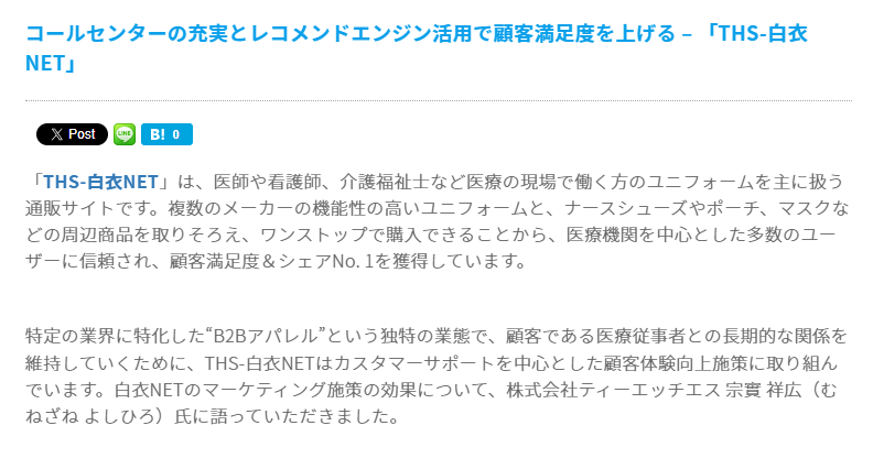 THS-白衣NETが毎月20%以上をレコメンド経由CVで獲得した事例
